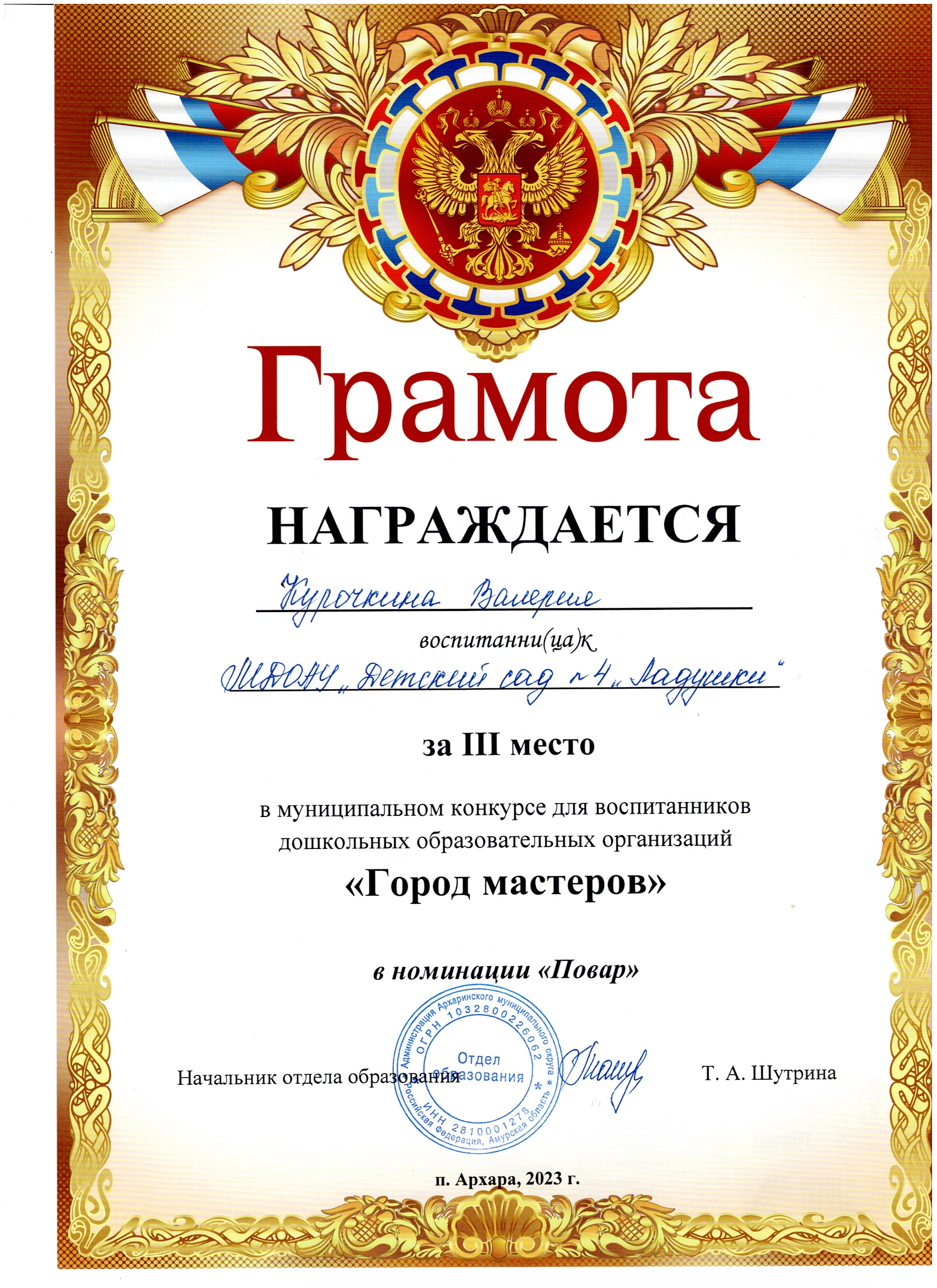 Старший воспитатель